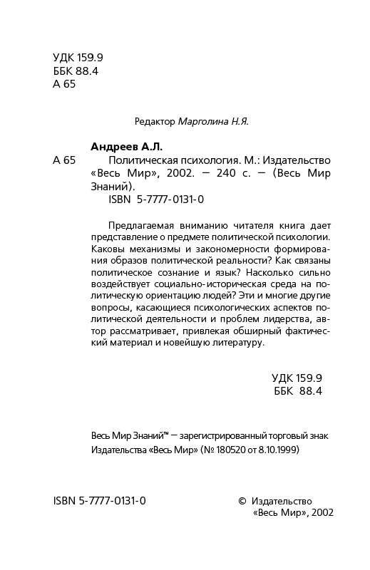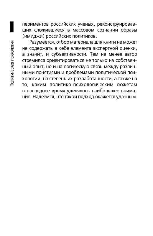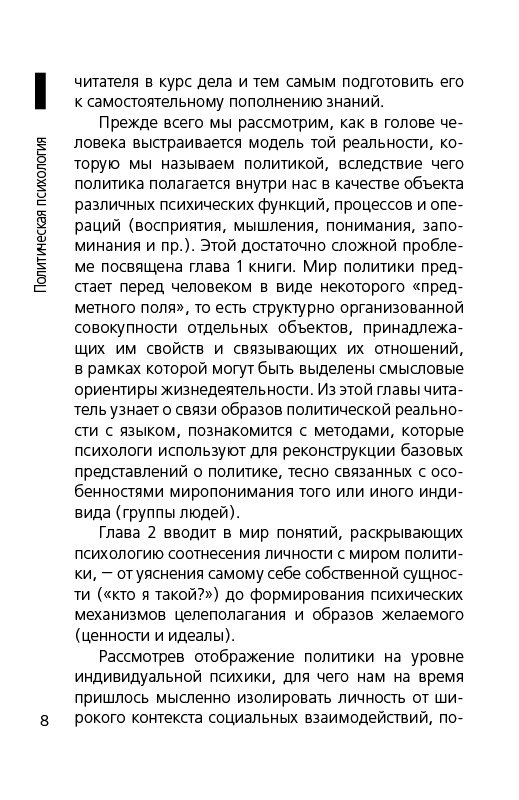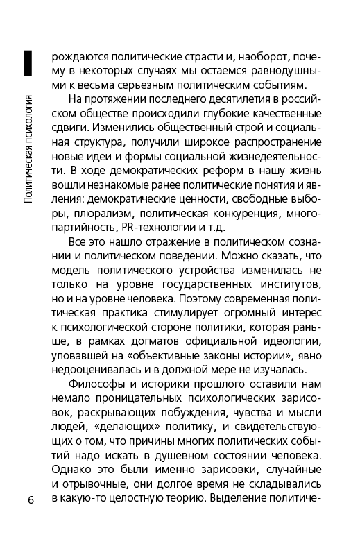 Предлагаемая вниманию читателя книга дает представление о предмете политической психологии. Каковы механизмы и закономерности формирования образов политической реальности? Как связаны политическое сознание и язык? Насколько сильно воздействует социально-историческая среда на политическую ориентацию людей? Эти и многие другие вопросы, касающиеся психологических аспектов по литической деятельности и проблем лидерства, автор рассматривает, привлекая обширный фактический материал и новейшую литературу.
