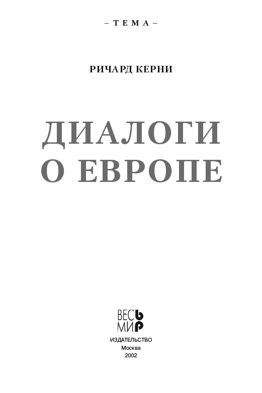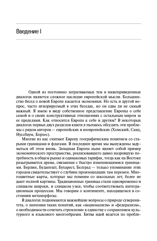 - Одной из постоянно затрагиваемых тем в нижеприведенных диалогах является сложное наследие европейской мысли. Большинство бесед о новой Европе касается экономики. Но есть и другой вопрос, часто игнорируемый в этих беседах, но он едва ли не самый важный....