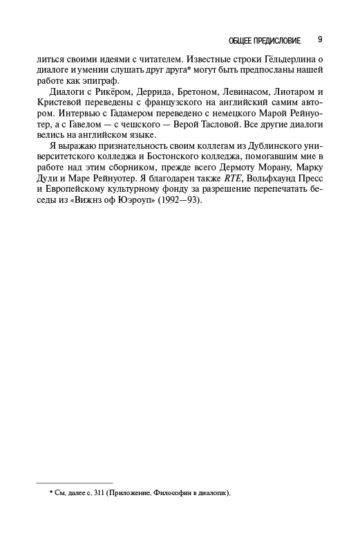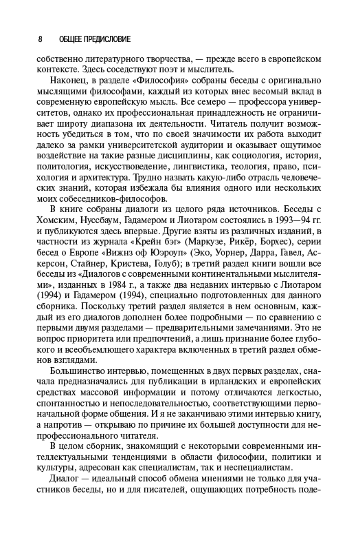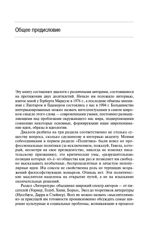 - Эту книгу составляют диалоги с различными авторами, состоявшиеся на протяжении двух десятилетий. Начало им положило интервью, взятое мной у Герберта Маркузе в 1976 г., а последние обмены мнениями с Лиотаром и Гадамером состоялись у нас в 1994 г....