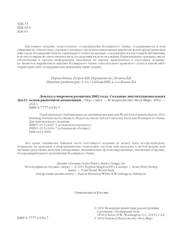Доклад о мировом развитии 2002. Создание институциональных основ рыночной экономики