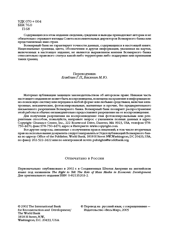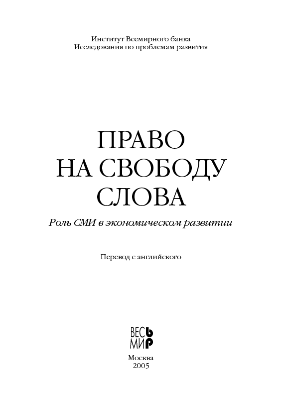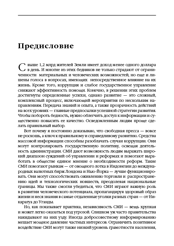«В данной книге речь идет о том, каким образом СМИ могут помочь экономическому развитию и в состоянии ли они вообще это сделать» (Румин Ислам, Всемирный банк).