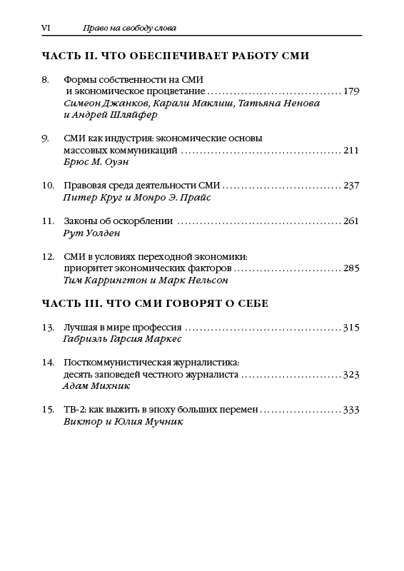 В книге рассматриваются вопросы структуры собственности на СМИ, экономической структуры самой отрасли, вопросы правового регулирования деятельности СМИ. На значительном материале, характеризующем развитие СМИ как в наиболее развитых странах: США, странах ЕС, так и в менее процветающих государствах, рассматриваются плюсы и минусы приватизации и монополизации в сфере СМИ, влияние отношений собственности на поведение СМИ.