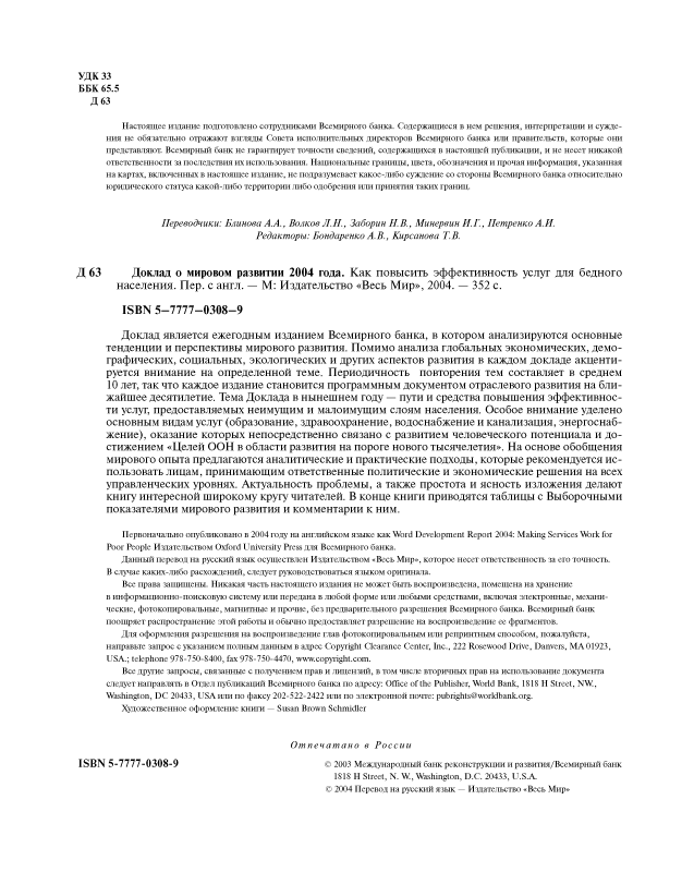 Доклад о мировом развитии 2004. Как повысить эффективность услуг для бедного населения