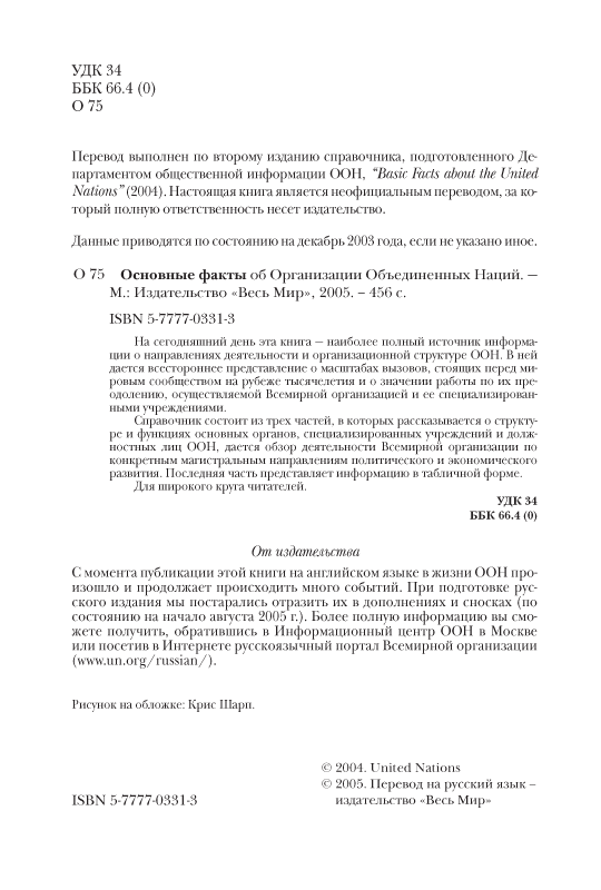 Перевод выполнен по второму изданию справочника, подготовленного Департаментом общественной информации ООН, “Basic Facts about the United Nations” (2004).