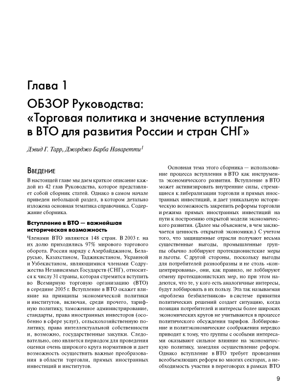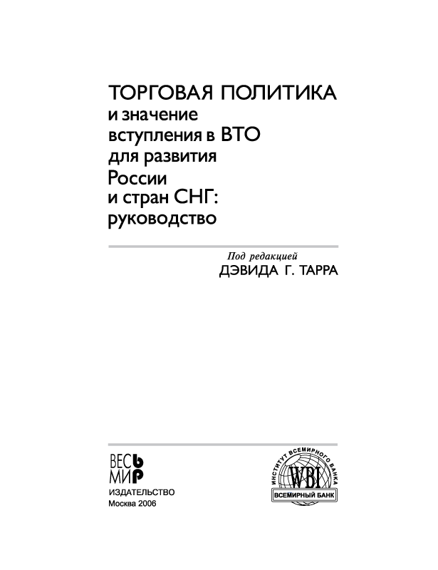 Глава 1. ОБЗОР Руководства: «Торговая политика и значение вступления в ВТО для развития России и стран СНГ»