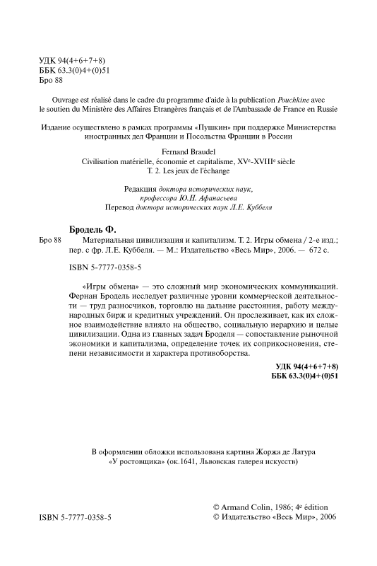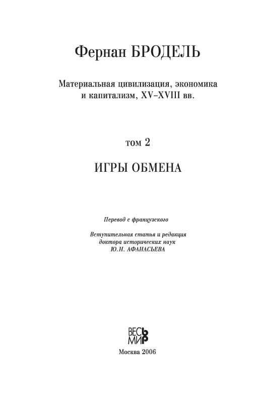Материальная цивилизация, экономика и капитализм, ХV–ХVIII вв. Т.2. Игры обмена