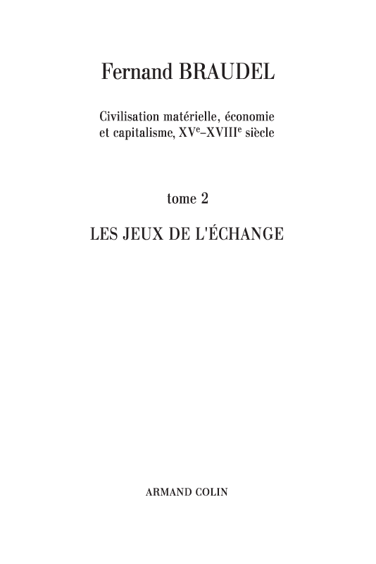 Civilisation matérielle, économie et capitalisme, XV-XVIII siècle T.2. Les jeux de l'échange