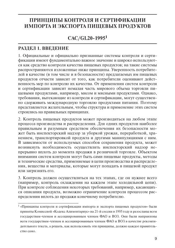 ПРИНЦИПЫ КОНТРОЛЯ И СЕРТИФИКАЦИИ ИМПОРТА И ЭКСПОРТА ПИЩЕВЫХ ПРОДУКТОВ (CAC/GL20-1995)