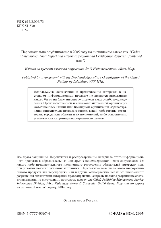 Кодекс Алиментариус. Системы контроля и сертификации импорта и экспорта пищевых продуктов. Объединенные тексты
