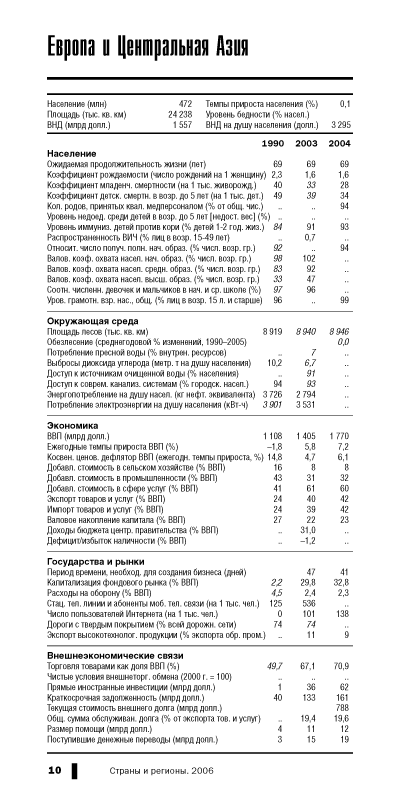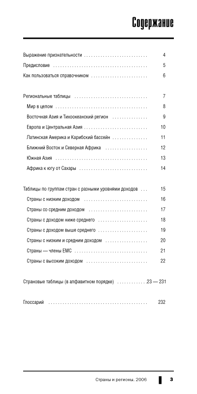В справочнике в табличной форме представлены статистические данные, характеризующие основные направления мирового развития (население, качество природной среды, экономика, развитие технологий и инфраструктуры, торговля и финансы). Более 50 статистических показателей по 208 странам, миру в целом, шести его основным регионам, а также по группам стран с различными уровнями дохода, являются важной информацией, необходимой в научной и практической деятельности.