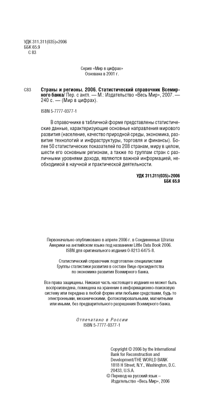 Страны и регионы 2006. Статистический справочник Всемирного банка