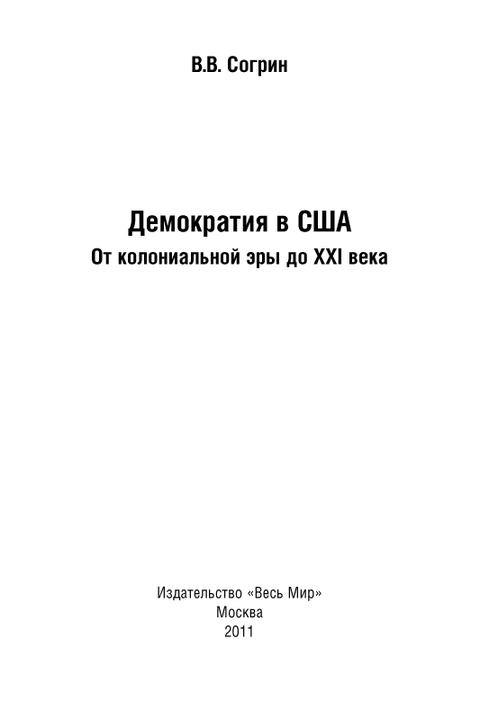 К выходу в свет книги Владимира Согрина «Демократия в США. От колониальной эры до XXI века»