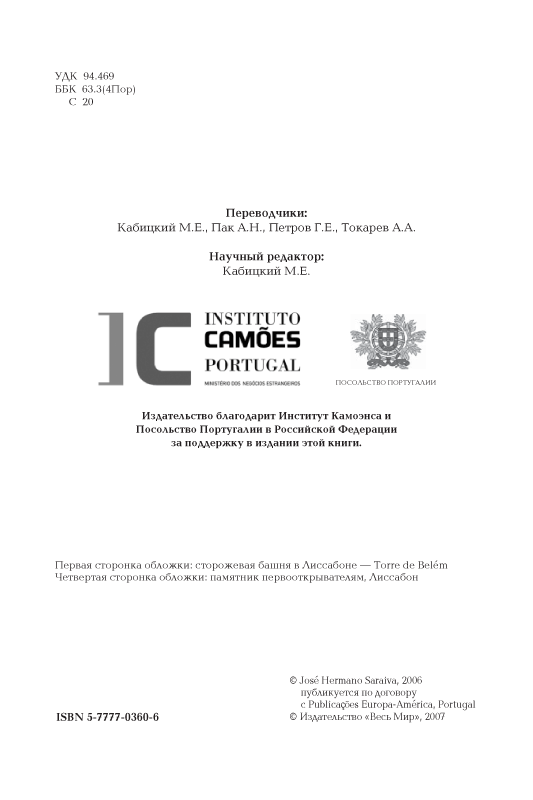 - Издание на русском языке книги профессора Жозе Эрману Сарайвы «Краткая история Португалии», осуществленное издательством «Весь Мир», представляет огромный интерес и выходит в свет как нельзя во время. В настоящее время отношения между Россией и Португалией переживают...