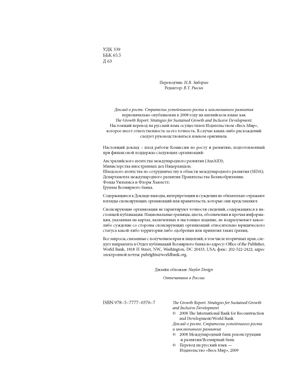 Доклад о росте. Стратегии устойчивого роста и инклюзивного развития