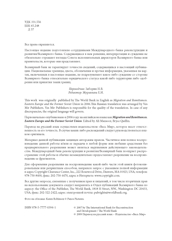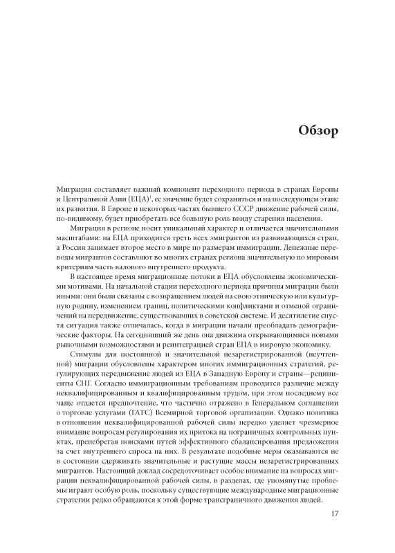Настоящий доклад входит в серию публикаций Всемирного банка, посвященную социально-экономическим проблемам стран с переходной экономикой Восточной Европы и бывшего Советского Союза, объединенных в условный регион Европы и Центральной Азии. Доклад имеет целью улучшить понимание ситуации, а также инициировать диалог о необходимости мер по выработке политики в отношении миграции для повышения отдачи от нее как для стран-поставщиков рабочей силы, так и для принимающих стран.