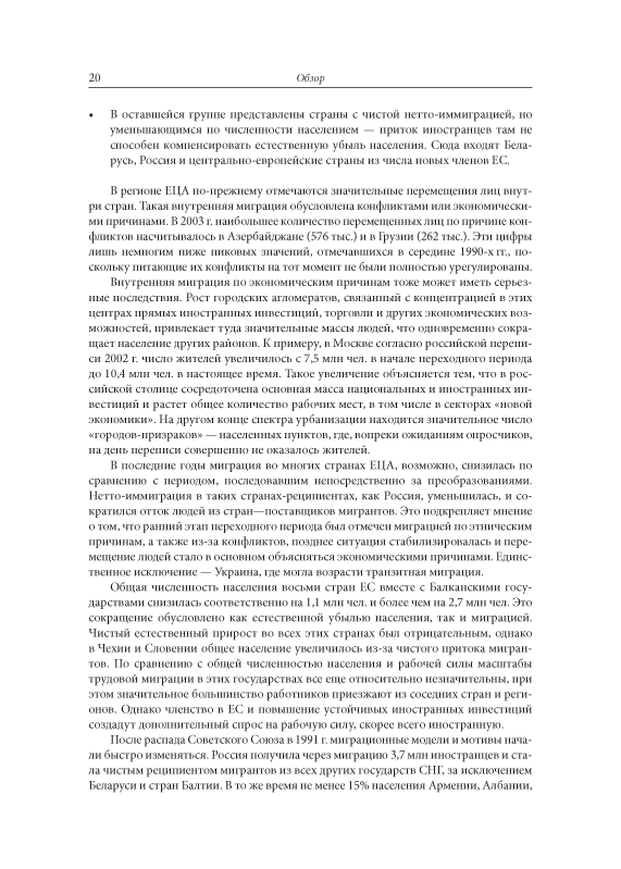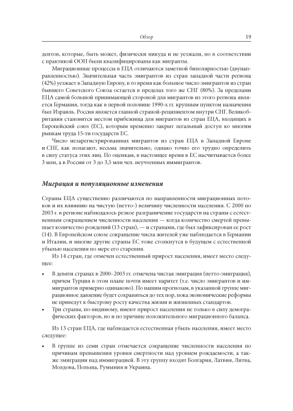 - Миграция составляет важный компонент переходного периода в странах Европы и Центральной Азии (ЕЦА), ее значение будет сохраняться и на последующем этапе их развития. В Европе и некоторых частях бывшего СССР движение рабочей силы, по-видимому, будет приобретать все большую роль ввиду старения населения....