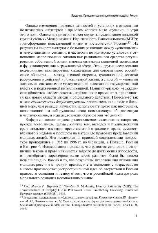 Образ и опыт права: Правовая социализация в изменяющейся России