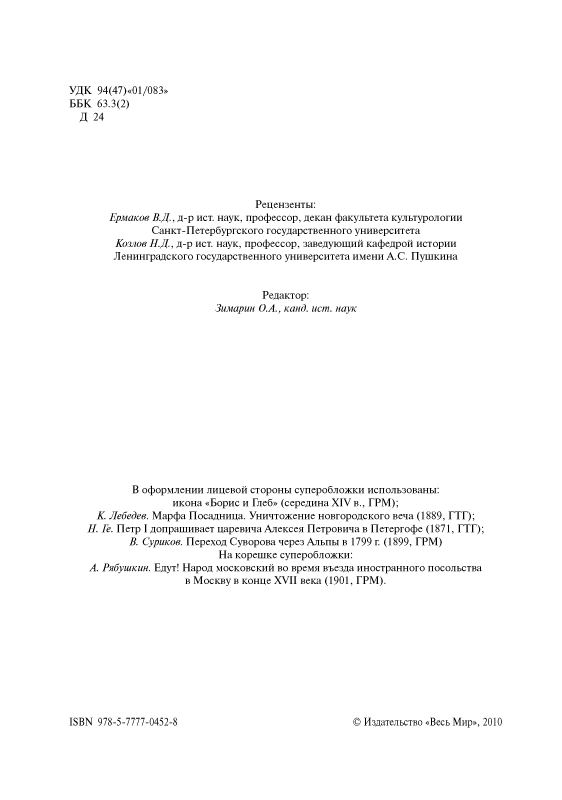Рекомендуется преподавателя и студентам исторических факультетов университетов, а также всем студентам, изучающим курс отечественной истории. Книга обращена и ко всем любителям давней и современной истории Отечества.