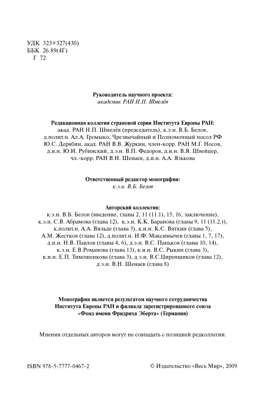 Книга предназначена для академической и университетской аудитории, экспертного сообщества, будет полезна всем, кто интересуется проблемами современной Германии.
