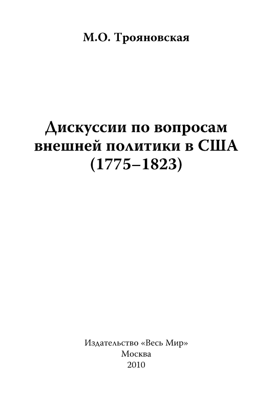 Вышла в свет книга Марии Олеговны Трояновской «Дискусии по вопросам внешней политики в США (1775-1823)».