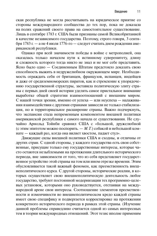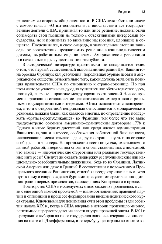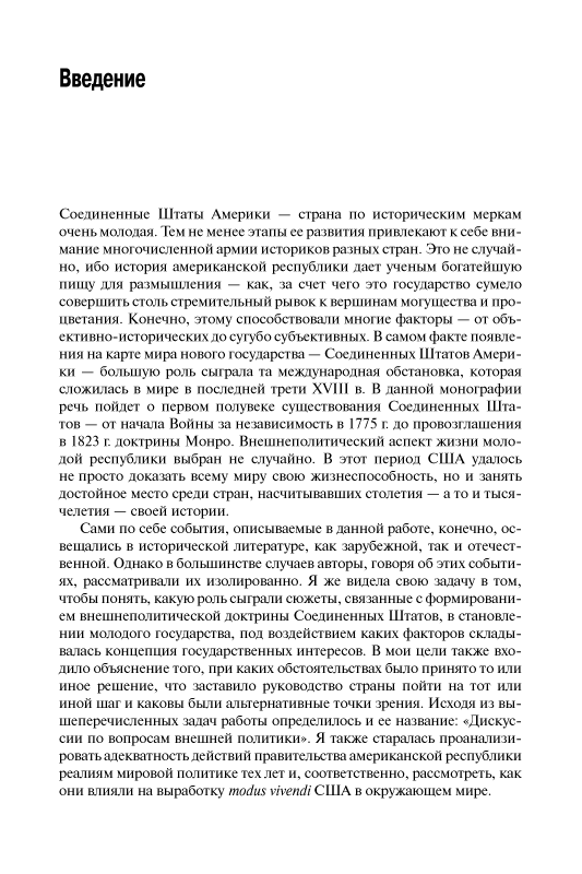 Большое внимание в монографии уделяется именно процессу выработки внешней политики, тем дискуссиям, которые сопровождали этот процесс. Автор обстоятельно показывает, как принципы внешней политики реализовывались на практике, что привело к беспрецедентной и успешной для США экспансии на американском континенте в рассматриваемый период. Несмотря на кажущуюся удаленность во времени описываемых в книге сюжетов, ее содержание представляется весьма актуальным, поскольку позволяет глубже понять исходные мотивы действий США в международных делах.