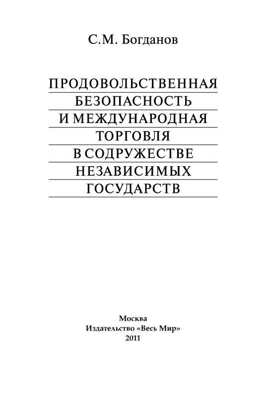 Вышла в свет книга: С.М. Богданов. Продовольственная безопасность и международная торговля в Содружестве независимых государств.