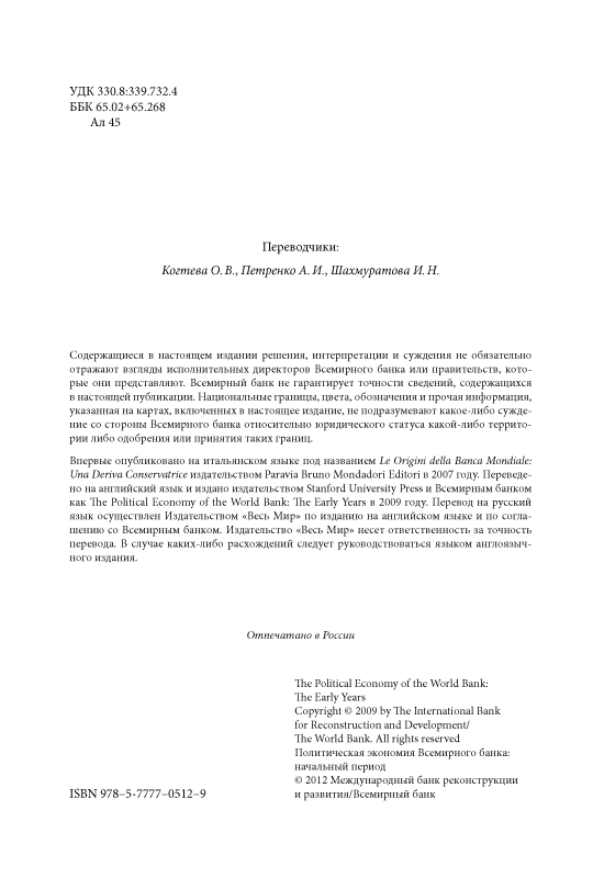 - Посвящается моему дедушке Ферруччио Эта книга рассказывает о первых годах существования Международного банка реконструкции и развития (МБРР), широко известного как Всемирный банк [1]. Тогда Банк впервые обратился к вопросу развития, который теперь занимает центральное место в его деятельности. Книга...