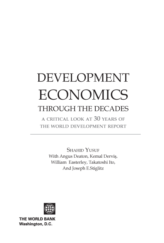 Эссе Шахида Юсуфа о тридцати годах истории Докладов о мировом развитии представляет собой мастерски выполненный обзор того, что на протяжении этих же самых 30 лет являлось деятельностью Всемирного банка в области экономики развития.