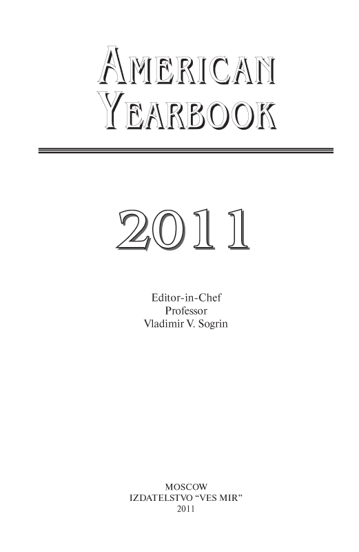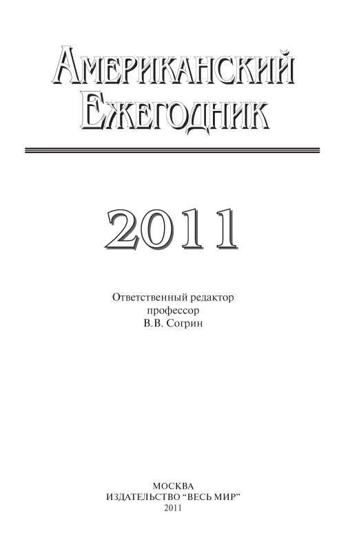 В «Американском ежегоднике 2011» представлены исследования российских и американских авторов по разнообразной проблематике истории США, Канады и Латинской Америки, истории российско-американских отношений и Русской Америки. Открывает издание статья проф. В. В. Согрина, обосновывающая оригинальную концепцию «Прогрессивной эры» в США. Публикуются исследования об эволюции в конце XX в. американской социально-экономической политики («эра протянутой руки»), принятии «Контракта с Америкой» Республиканской партии, роли дипломатии США и С. Ю. Витте в связи с потерей Россией южной части Сахалина в 1905 г., особенностях восприятия в России 1860-х — 1870-х гг. образа американцев, культивировании в конце XIX — начале XX в. сортов русской пшеницы на Великих равнинах в США и др. Продолжена публикация серии статей, посвященных американской тематике в архивах Российской Федерации. Подробно описаны фонды архивов Кировской и Тюменской областей. Канадская проблематика представлена работами о судьбе франкоязычных акадийцев во второй половине XVIII в. и современных российско-канадских инициативах в сферах экологии в Арктике. В рубрике «История стран Латинской Америки» публикуется статья, рассматривающая французскую топонимику как способ легитимации присутствия Франции в Бразилии в XVI — начале XVII в.