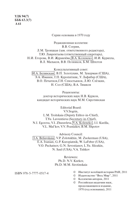 Отв. ред. В.В. Дамье, Т.В. Андросова