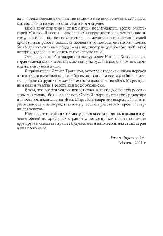 - Представляя книгу Расима Дирсехана Орса российскому читателю, издательство посчитало полезным предпослать ей небольшое вступительное слово, цель которого в том, чтобы органичнее вписать его повествование в исторический контекст развития российско-турецких отношений. Наверное, среди государств-соседей...