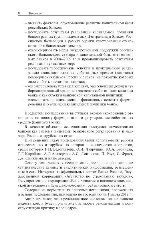 В настоящей монографии рассматривается комплекс экономико-правовых проблем, связанных с регулированием собственных средств (капитала) коммерческого банка с учетом наднациональных рекомендаций Базельского комитета по банковскому надзору и особенностей банковской системы России.