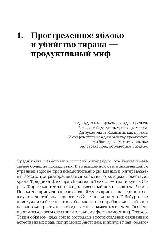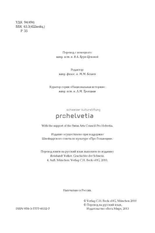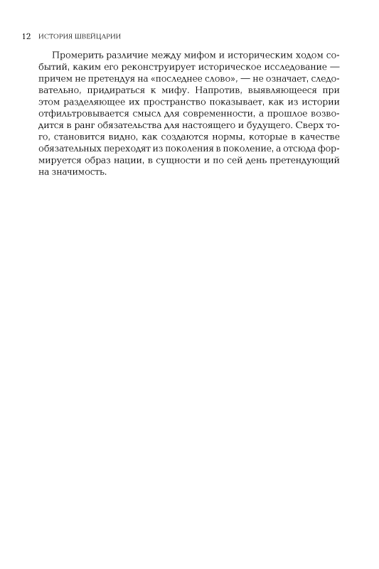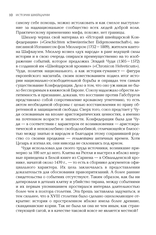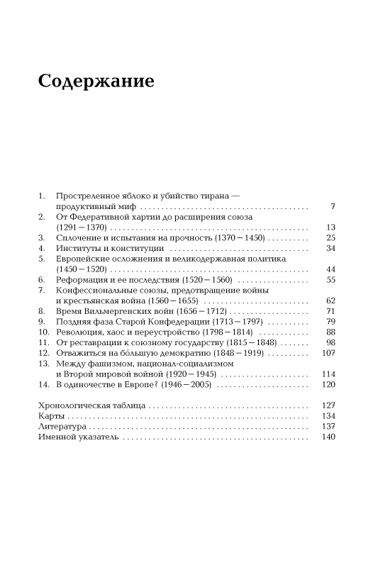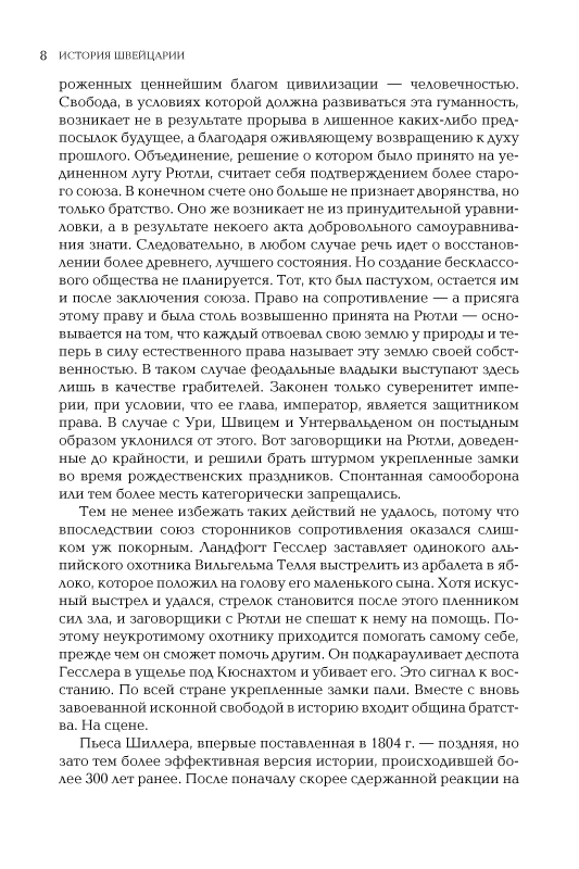 В своей небольшой книге профессор Фрибургского университета Фолькер Райнхардт сумел дать очень емкий и критический обзор швейцарской истории. Она позволяет составить отчетливое представление и о главных этапах истории этой небольшой альпийской страны, и о неповторимых особенностях ее государственного, политического, конфессионального устройства.