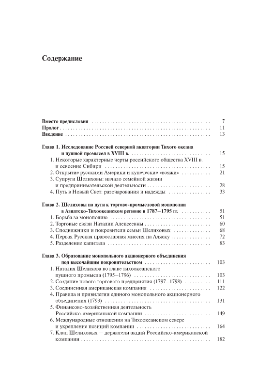 В данной книге подробно рассказано об этой незаурядной женщине, которая, несмотря на объективные и субъективные ограничения и трудности, связанные с положением женщины в России во второй половине XVIII — начале XIX в., не только занималась домашним хозяйством и воспитывала детей, но и всячески помогала мужу в торгово-предпринимательских делах. Уникальность личности Наталии Алексеевна состоит и в том, что после безвременной кончины Г.И. Шелихова она нашла в себе силы продолжить его дело и при помощи ближайших родственников, в частности Н.П. Резанова, добиться от императора Павла I учреждения монопольной акционерной Российско-американской компании (1799), которая вплоть до 1867 г. безраздельно господствовала в русских владениях на Северо-Западе Америки.