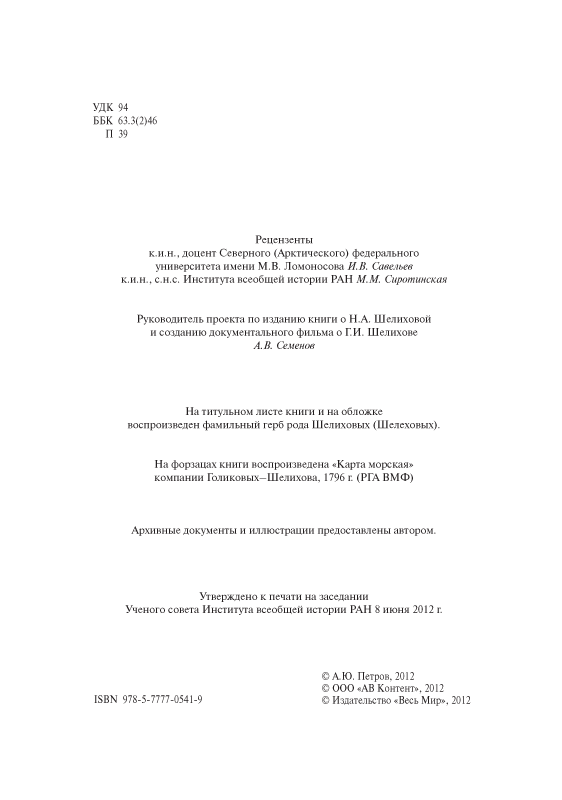История Русской Америки всегда вызывает большой интерес. Хронологически она длилась почти полтора века от первых русских открытий на Тихоокеанском севере и завершилась продажей владений России на Северо-Западе Америки в 1867 г. Громадную роль в этой по истине грандиозной эпопее играли российские купцы, которые не только снаряжали промысловые экспедиции и торговали пушниной, но при их непосредственном участии совершались географические открытия, осваивались громадные пространства Сибири и Северной Америки, устанавливались контакты с туземными племенами, распространялось православие. Они способствовали также развитию международных отношений. Во всей этой разнообразной деятельности особое место занимают супруги Григорий Иванович и Наталия Алексеевна Шелиховы, которые стояли у истоков многих начинаний. В 1780-х гг. они побывали в Америке и основали первое постоянное русское поселение на Аляске.