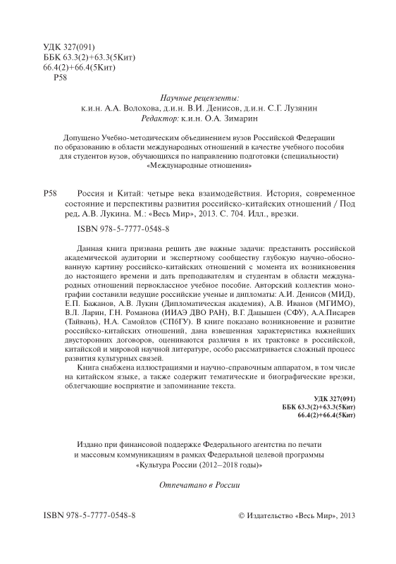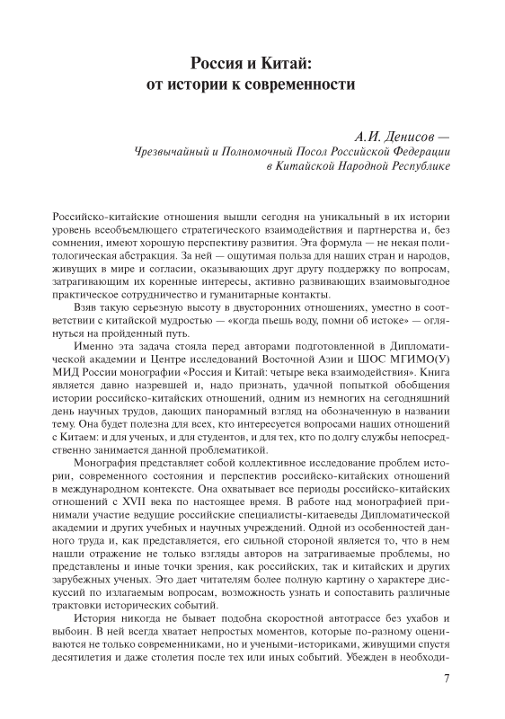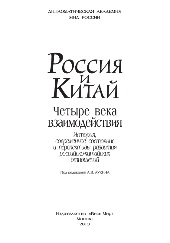 Россия и Китай: четыре века взаимодействия. История, современное состояние и перспективы развития российско-китайских отношений