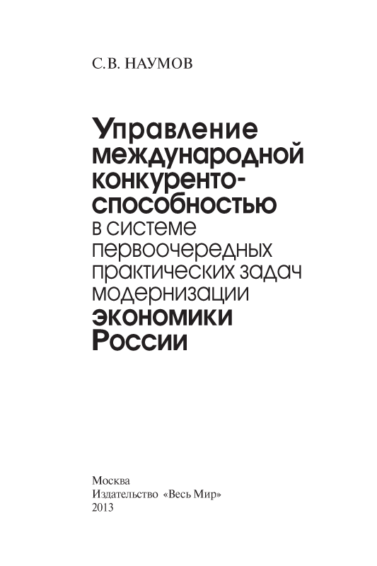 Управление международной конкурентоспособностью в системе первоочередных практических задач модернизации экономики России