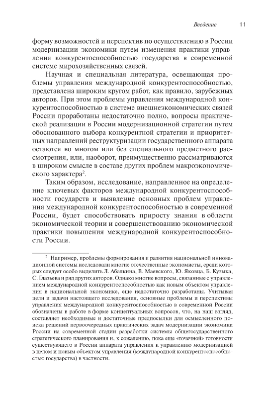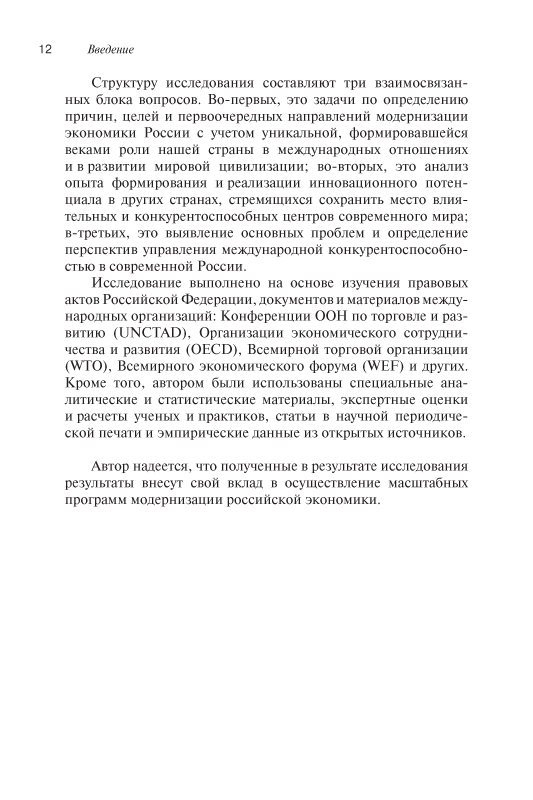 На основе исследования обширного теоретического и эмпирического материала автором раскрыты причины, цели и первоочередные практические задачи модернизации экономики России с учетом уникальной, веками формировавшейся роли России в международных экономических отношениях и в развитии мировой цивилизации. В работе проанализирован опыт формирования и реализации инновационного потенциала в других странах, стремящихся сохранить место влиятельных и конкурентоспособных центров современного мира, выявлены основные проблемы и перспективы управления международной конкурентоспособностью в современной России.