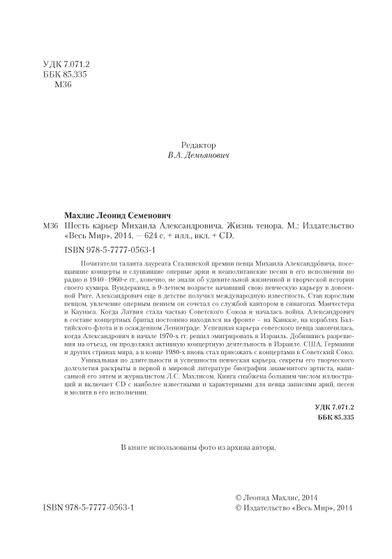- Книга Леонида Махлиса «Шесть карьер Михаила Александровича. Жизнь тенора» признана Лучшей книгой года в номинации «Лучшее справочно-библиографическое оформление книги». Поздравляем Автора — Леонида Семеновича! Дипломы получили также книги: «Кризис евро и глобальные...