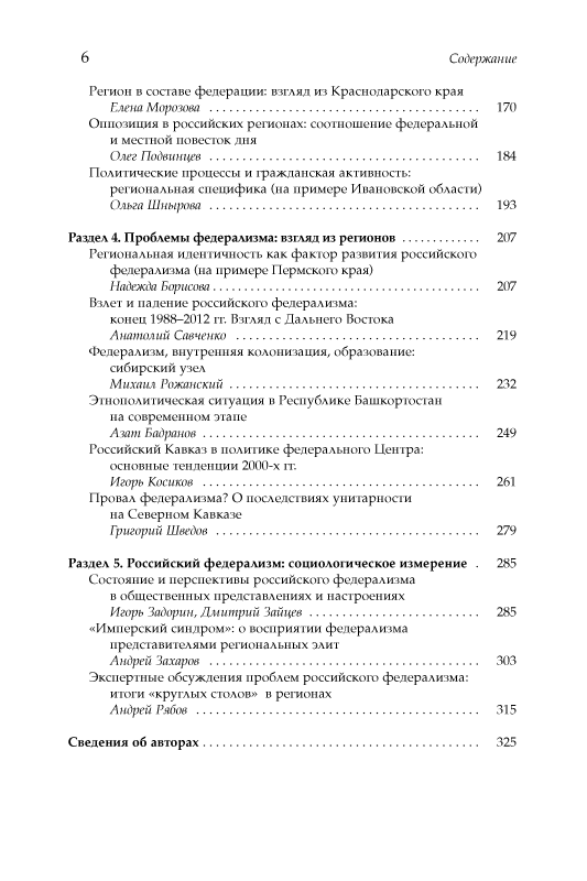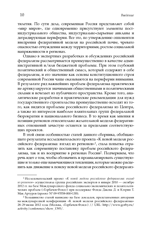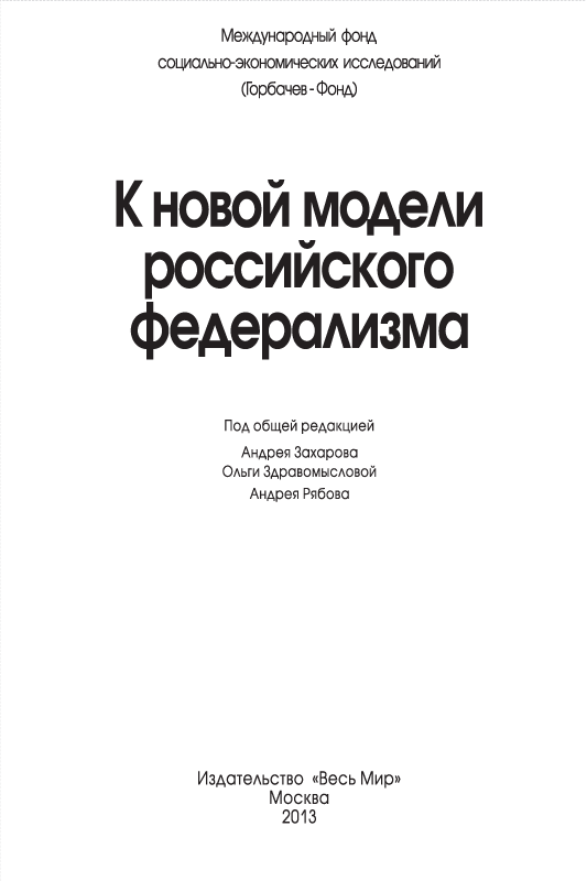 Статьи данного сборника обобщают результаты исследовательского проекта «К новой модели российского федерализма: взгляд из регионов», осуществленного в январе 2010 — ноябре 2012 гг. на базе Международного фонда социальноэкономических и политологических проблем («Горбачев-Фонд») группой российских экспертов. Приведены социологические данные и материалы «круглых столов», состоявшихся в нескольких региональных центрах Российской Федерации. Авторы стремились обозначить и проанализировать как сложившиеся, исторически, экономически и политически обусловленные реалии, так и намечающиеся тенденции, которые можно расценивать как движение к поиску путей развития российского федерализма. Для читателей, интересующихся проблемами государственного устройства России.