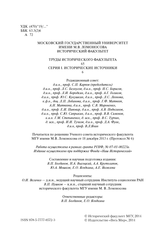Отв. ред. д.и.н. М.Г. Вандалковская