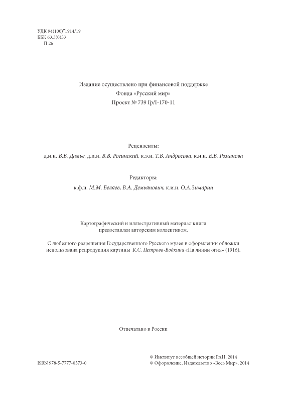 - Во время большой международной конференции в Институте всеобщей истории РАН «Первая мировая война — пролог XX века» получила высокую оценку наша новая книга.
