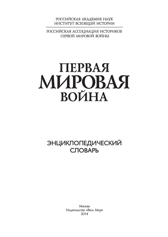 - К 100-летию начала Великой войны издательство «Весь Мир» вместе с Институтом всеобщей истории РАН выпустило фундаментальное справочное издание.