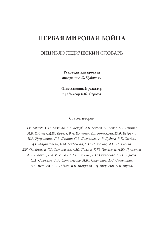 Энциклопедический словарь, посвященный Первой мировой войне, впервые подготовлен коллективом российских ученых. Целью и задачами авторов было максимально объективное освещение основных предпосылок и событий войны, анализ важнейших сражений и работы тыла, дипломатических усилий держав, деятельности политиков, военачальников, а также простых «тружеников» войны, антивоенных сил.