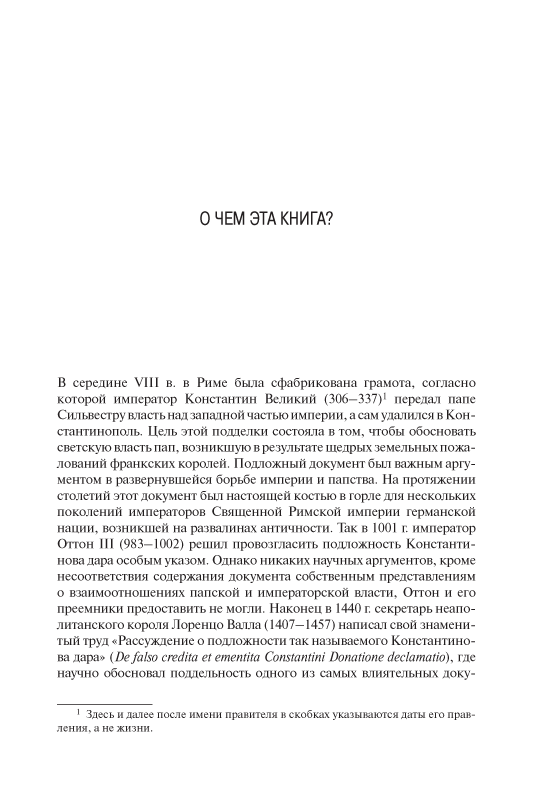 - В середине VIII в. в Риме была сфабрикована грамота, согласно которой император Константин Великий (306—337)[1] передал папе Сильвестру власть над западной частью империи, а сам удалился в Константинополь. Цель этой подделки состояла в том, чтобы обосновать светскую...
