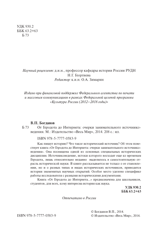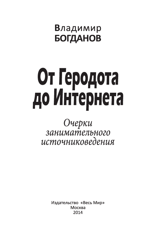 - Московский историк написал очень полезную и увлекательную книгу: От Геродота до Интернета. Очерки занимательного источниковедения.