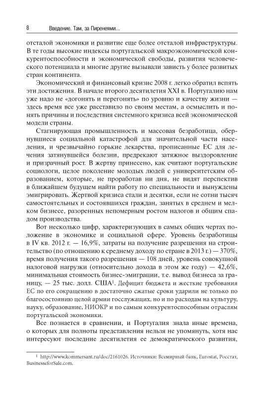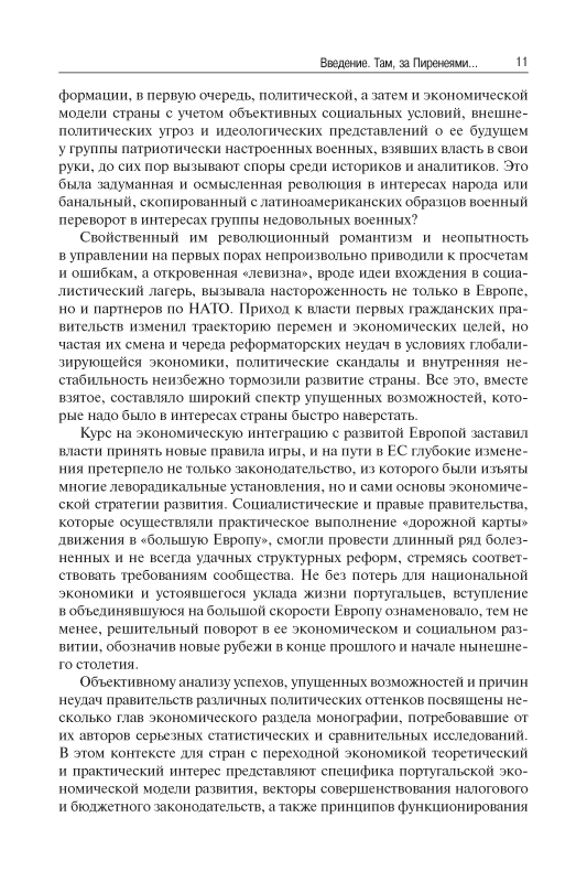 Сорок лет назад группа прогрессивно настроенных военных захватила власть в стране, совершив революцию, вошедшую в историю как «революция гвоздик». После нескольких десятилетий диктатуры страна обрела свободу. А вскоре предоставила ее и своим бывшим колониям, с которыми вела длительные войны. Начался особый «португальский транзит» – короткий и противоречивый этап послереволюционных преобразований, закрепивших демократический характер государства. Частая смена правительств, несмотря на членство страны в ЕС и щедрые субсидии, не позволила добиться устойчивого экономического роста. Мировой финансовый кризис еще больше ухудшил ее финансовое положение, обрушил рынок труда, заставил сократить социальные расходы. О жизни и проблемах современной Португалии, о духовном состоянии общества в монографии рассказано «двумя перьями» – российскими и португальскими учеными, что делает картину объемной и глубокой.