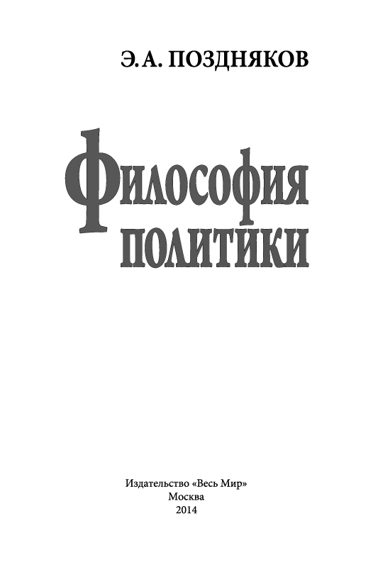 - К выходу в свет книги «Философия политики» Э.А.Позднякова.