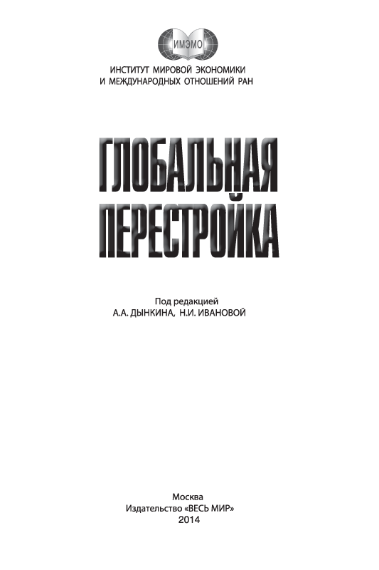 - В издательстве «Весь Мир» под названием Global “Perestroika”. Transformations of the World Order вышла в переводе на английским язык книга «Глобальная перестройка», изданная нами в прошлом году.