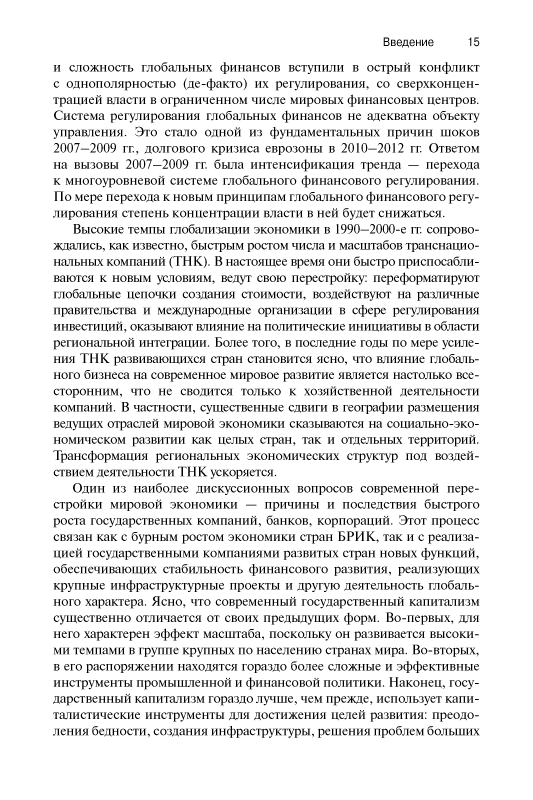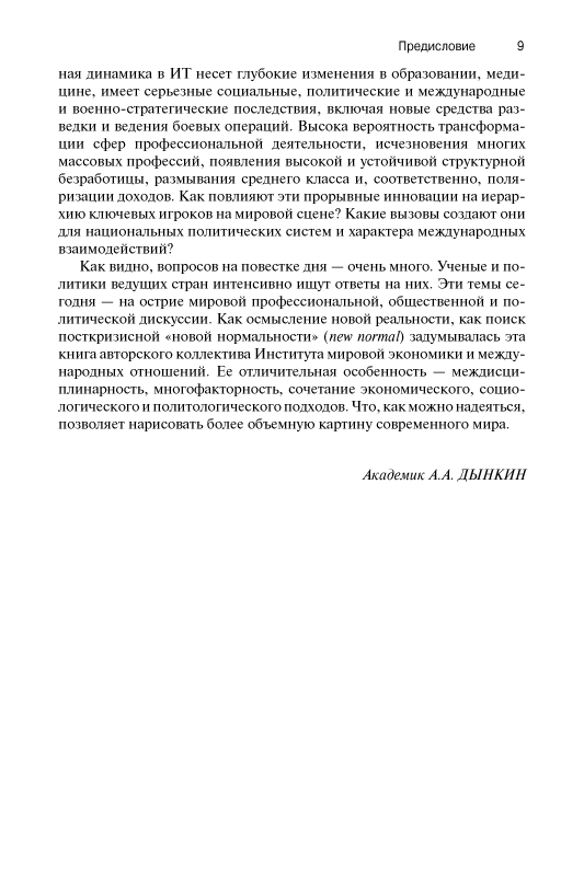 Что такое посткризисная «новая нормальность» (new normal)? Авторский коллектив Института мировой экономики и международных отношений (ИМЭМО РАН) попытался ответить на этот вопрос, осмыслив новую реальность в разных плоскостях: в экономической, социальной и политической. Авторы проанализировали поиски новой модели роста экономики и новые подходы в регулировании финансовых рынков, особенности инновационной политики и развитие нефтегазового сектора, новую корпоративную карту миру, где особое место отвоевывают государственные компании. В тесной взаимосвязи с экономикой меняется социальная сфера: государственная политика находится в поиске ответов на новые вызовы социальных дисбалансов и миграционной политики; государственная политика перестраивается под давлением требований, предъявляемых человеком XXI века к демократии. Эти проблемы свойственны всем странам, однако особое значение они имеют для «новой периферии» – посткоммунистических стран. Существенные изменения наблюдаются также в политической сфере: новые реалии формируются в системе международных отношений, которые проявляются в развитии трансатлантических отношений и отношений США и КНР. В посткризисный период меняется парадигма международной безопасности. Эту тенденцию авторы иллюстрируют на примерах урегулирования конфликтов в зоне АфПак и на Ближнем Востоке. Также кризис повлиял на развитие интеграции в ЕС.